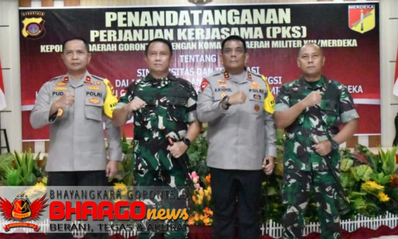 Perjanjian kerja sama tersebut ditandatangani langsung Panglima Kodam XIII/Merdeka Mayjen TNI Legowo W.R. Jatmiko, S.I.P., M.M., dengan Kapolda Gorontalo Irjen Pol, Drs. Angesta Romano Yoyol, M.M., bertempat di Aula Titinepo Polda Gorontalo, jalan Ahmad A. Wahab No.17, desa Pantungo, Kec. Telaga Biru, Kabupaten Gorontalo, Senin (11/12/2023).