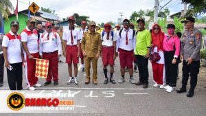 Didampingi Ketua Bhayangkari Ranting Popayato, Kapolsek Yan Tudaan Lepas Peserta Gerak Jalan
