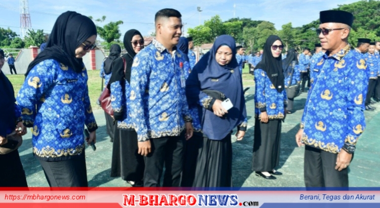 Wakil Bupati Pohuwato, Iwan S. Adam, turun langsung melakukan pemeriksaan barisan Aparatur Sipil Negara (ASN) sebelum apel dimulai.