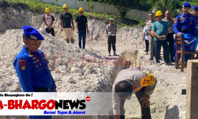 Peletakan batu pertama dilakukan secara simbolis oleh Kapolda Gorontalo, didampingi oleh Dirpolairud Kombes Pol Wiyogo Pamungkas, S.I.K., M.Hum., serta tokoh masyarakat dan para pejabat lainnya.