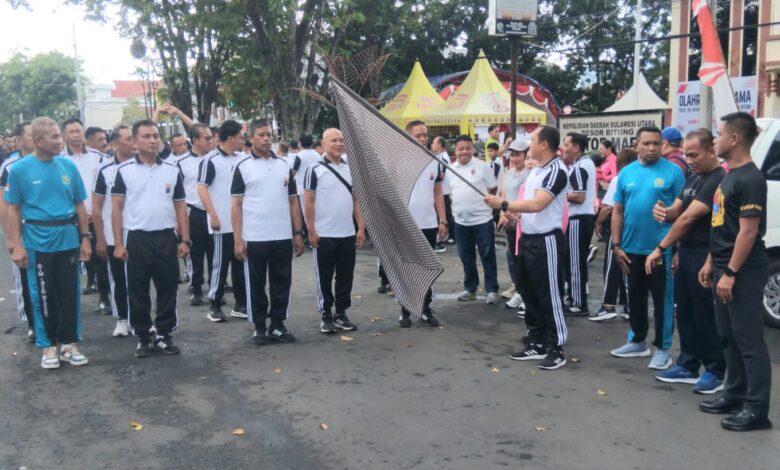 Kapolres Bitung melepas jalan sehat bersama Polri, TNI, dan Instansi Lainnya dalam Rangka Semarak Hari Bhayangkara Ke-79