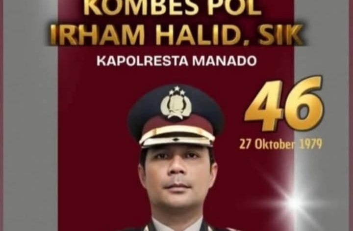 M’Bhargo, Sulut (Manado), Senin (27/11/2025) — Ucapan selamat dan doa mengalir untuk Kombes Pol Irham Halid, S.I.K, Kapolresta Manado, yang hari ini, 27 Oktober 2025, genap berusia 46 tahun. Lahir pada 27 Oktober 1979, perwira menengah Polri ini dikenal sebagai sosok pemimpin yang tegas, berintegritas, namun tetap humanis dalam menjalankan tugasnya menjaga keamanan dan ketertiban di Kota Manado.