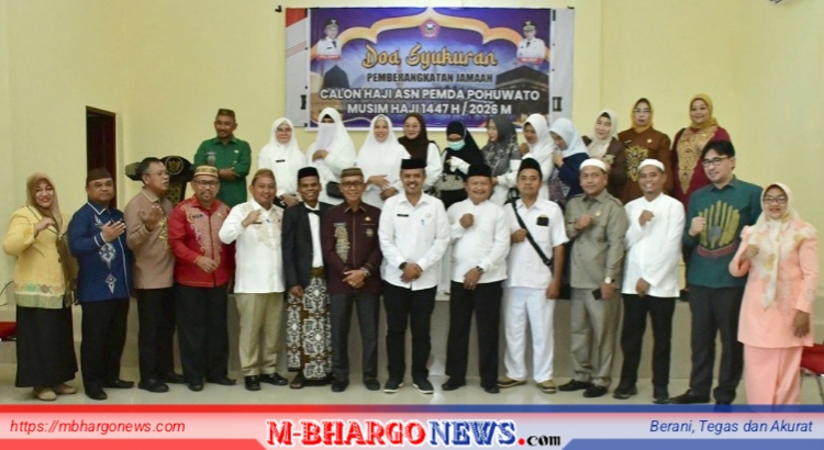 MBharGoNews.com – Pemerintah Daerah Kabupaten Pohuwato menggelar doa bersama pemberangkatan Jemaah Calon Haji (JCH) dari kalangan Aparatur Sipil Negara (ASN) untuk musim haji 1447 Hijriah/2026 Masehi yang berlangsung di Ruang Rapat Gunung Pani, Kantor Bupati Pohuwato, Kamis (30/4/2026).