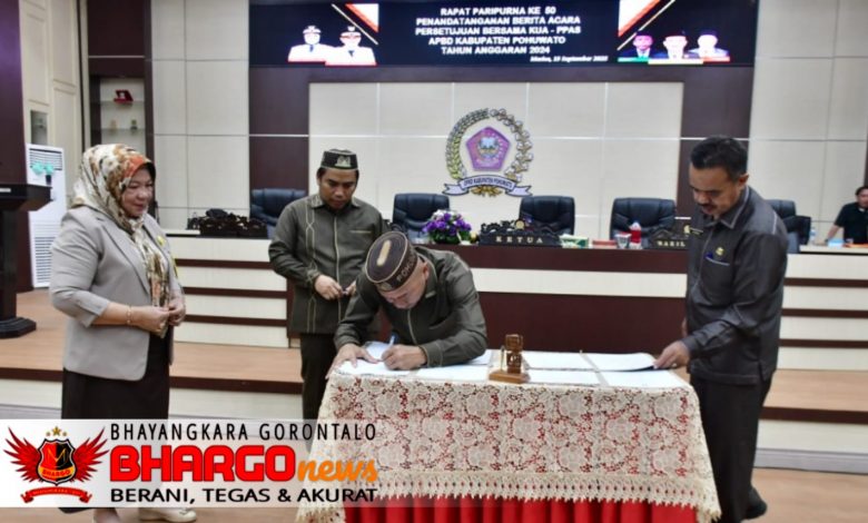 Nota kesepakatan itu, masing-masing ditandatangani oleh Bupati Pohuwato Saipul A. Mbuinga bersama Wakil Ketua DPRD Nirwan Due, dalam Rapat Paripurna ke-50, yang digelar di Ruang Sidang Utama DPRD Pohuwato, Selasa (19/09/2023).