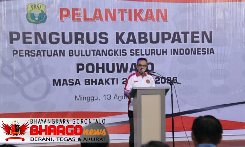 MBharGoNews.com, Pohuwato – Bupati Pohuwato diwakili Sekretaris Daerah, Iskandar Datau menghadiri pengukuhan Pengurus Persatuan Bulutangkis Seluruh Indonesia (PBSI) Kabupaten Pohuwato masa bakti 2022-2026, di Gedung Ar-Rumi Badminton Hall, Minggu (13/08/2023).