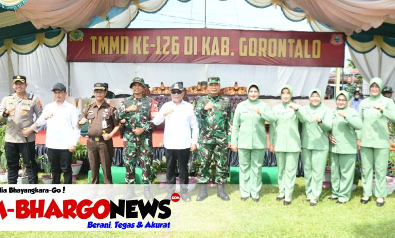 TMMD ke-126 kali ini mengusung tema “Dengan Semangat TMMD Mewujudkan Pemerataan Pembangunan dan Ketahanan Nasional di Wilayah”, ditandai dengan penandatanganan berita acara kegiatan oleh Bupati Gorontalo kepada Dandim 1315/Kabupaten Gorontalo Letkol Arh Roma Laksana Yudha, S.A.P., M.Sos., serta penyerahan perlengkapan TMMD secara simbolis kepada perwakilan prajurit.